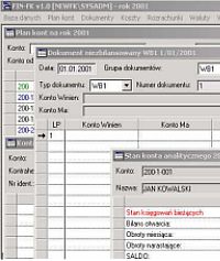 - wygodna procedura wprowadzania danych (księgowanie dwustronne, jednoczesny podgląd i modyfikacja planu kont na etapie wprowadzania dokumentu, kontrola dokumentu...)